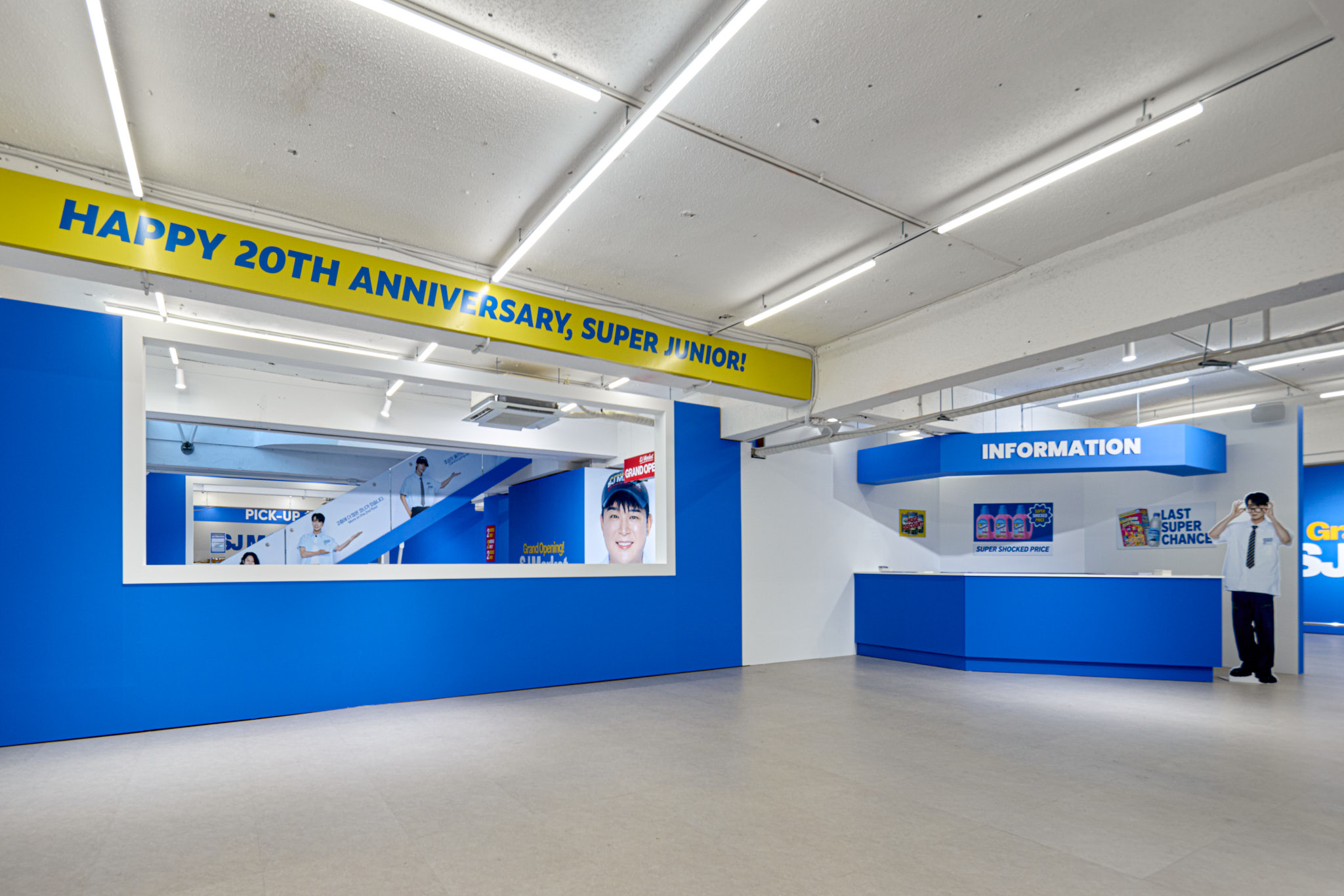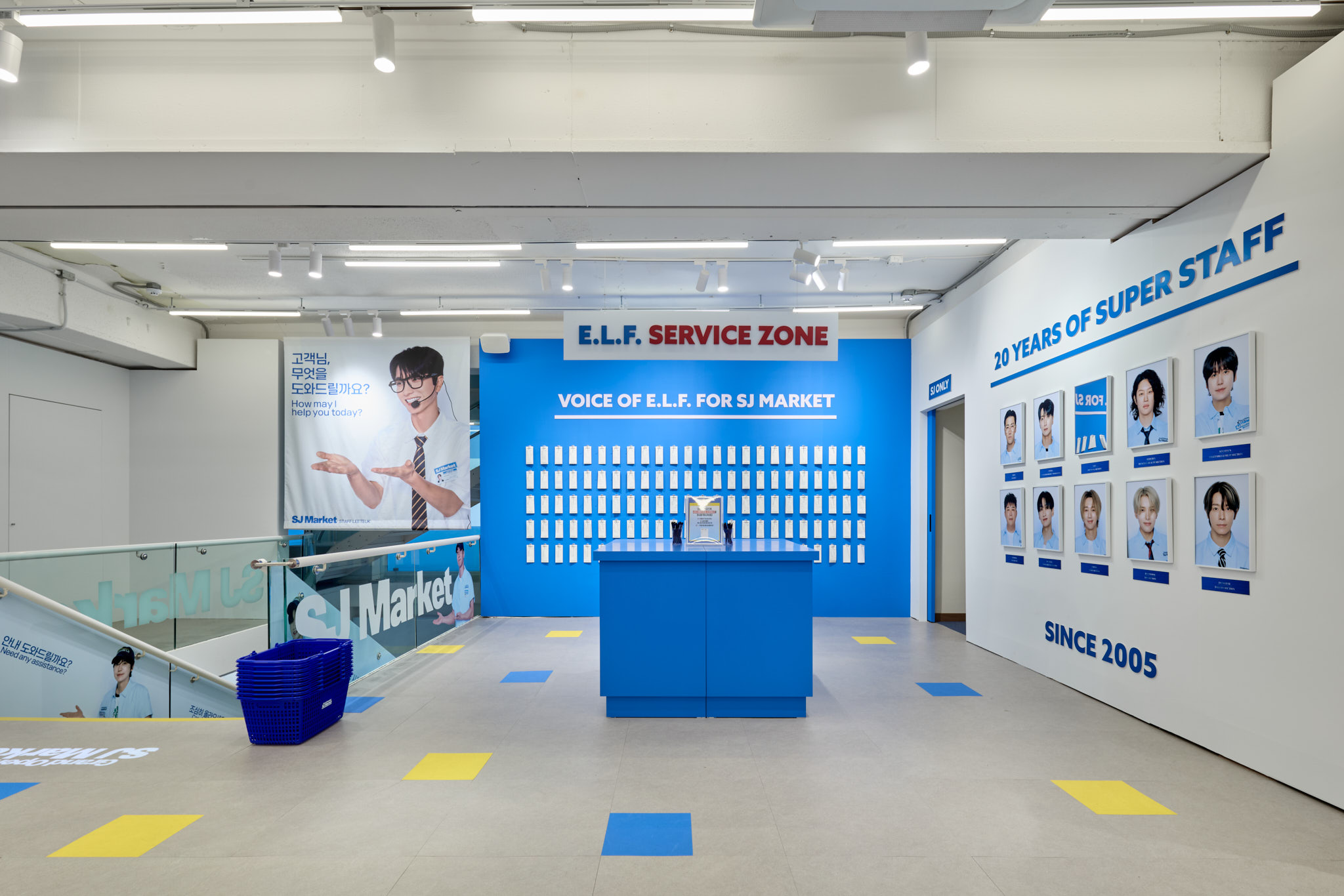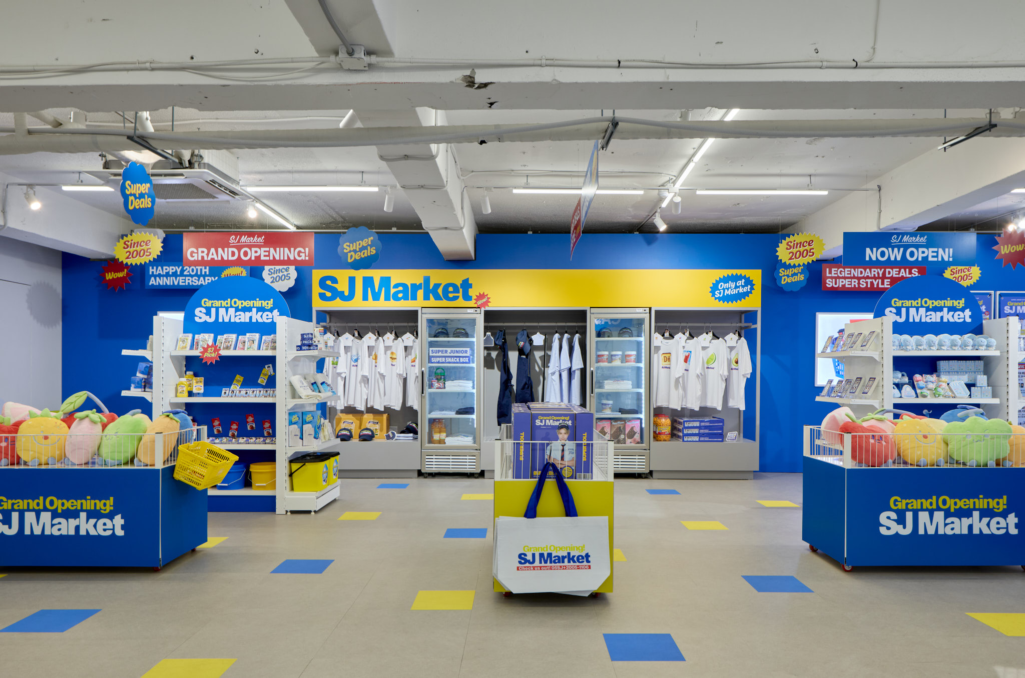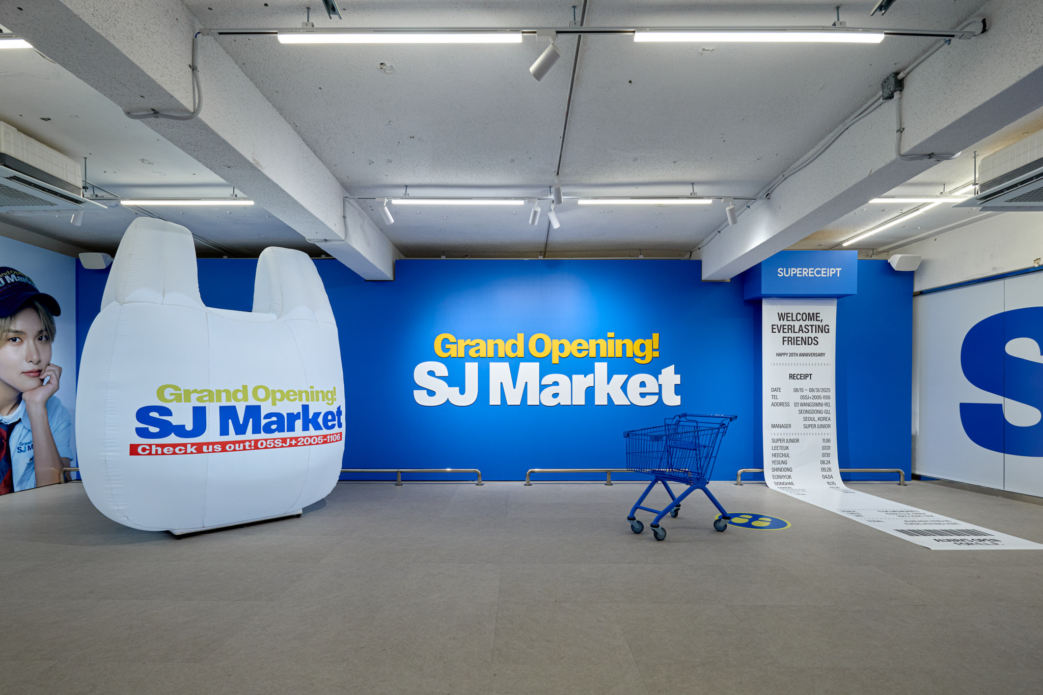 슈퍼주니어 데뷔 20주년을 맞아 오픈한 SJ Market 입니다. 20주년을 맞아 성수동에 문을 연 SJ Market은 실제 마트가 아닌 슈퍼주니어가 만든 상상 속 마트 입니다. 화려한 마트 공간과 마트 뒷편에 숨겨진 직원(슈퍼주니어 멤버)들의 오피스 공간까지, 즐길 거리와 볼거리가 가득한 마켓입니다.