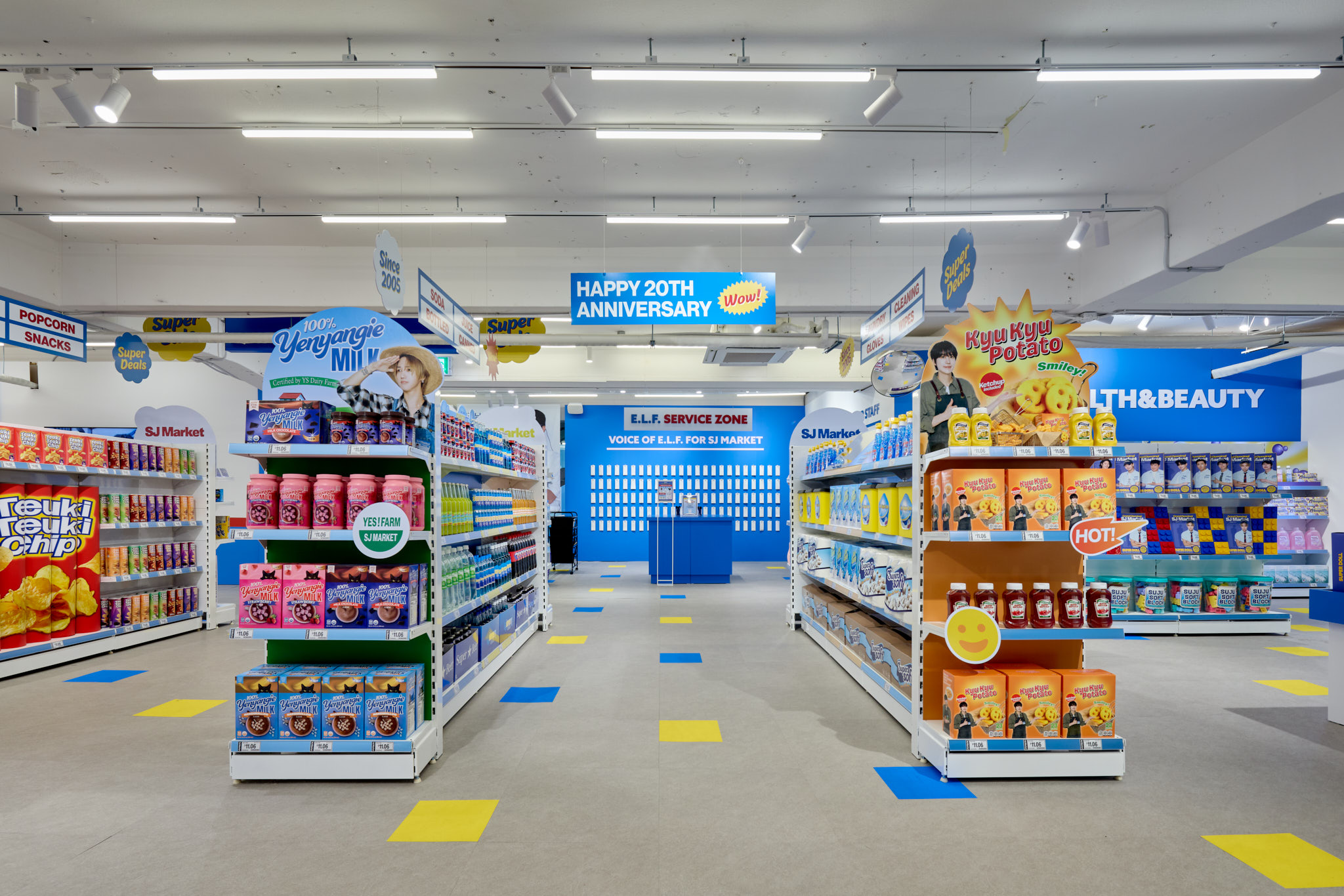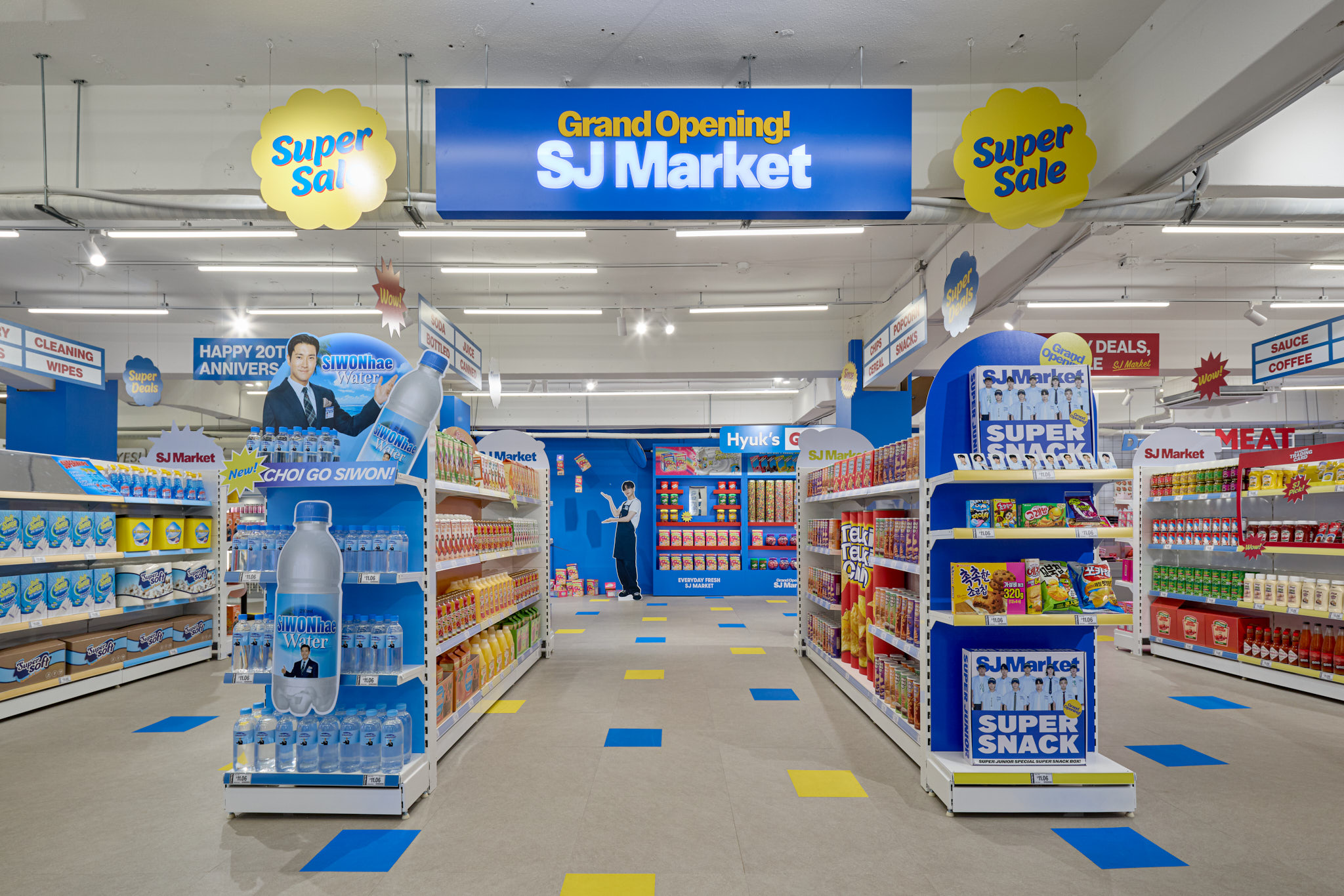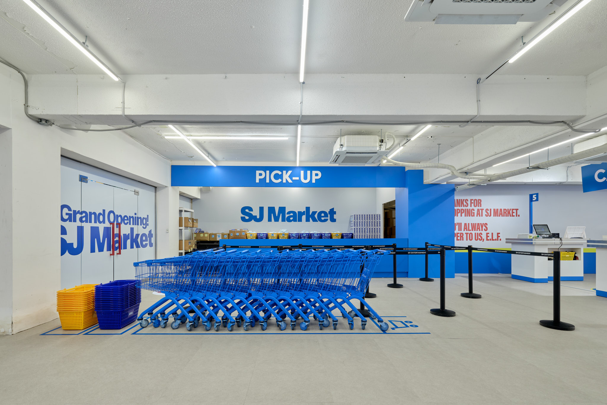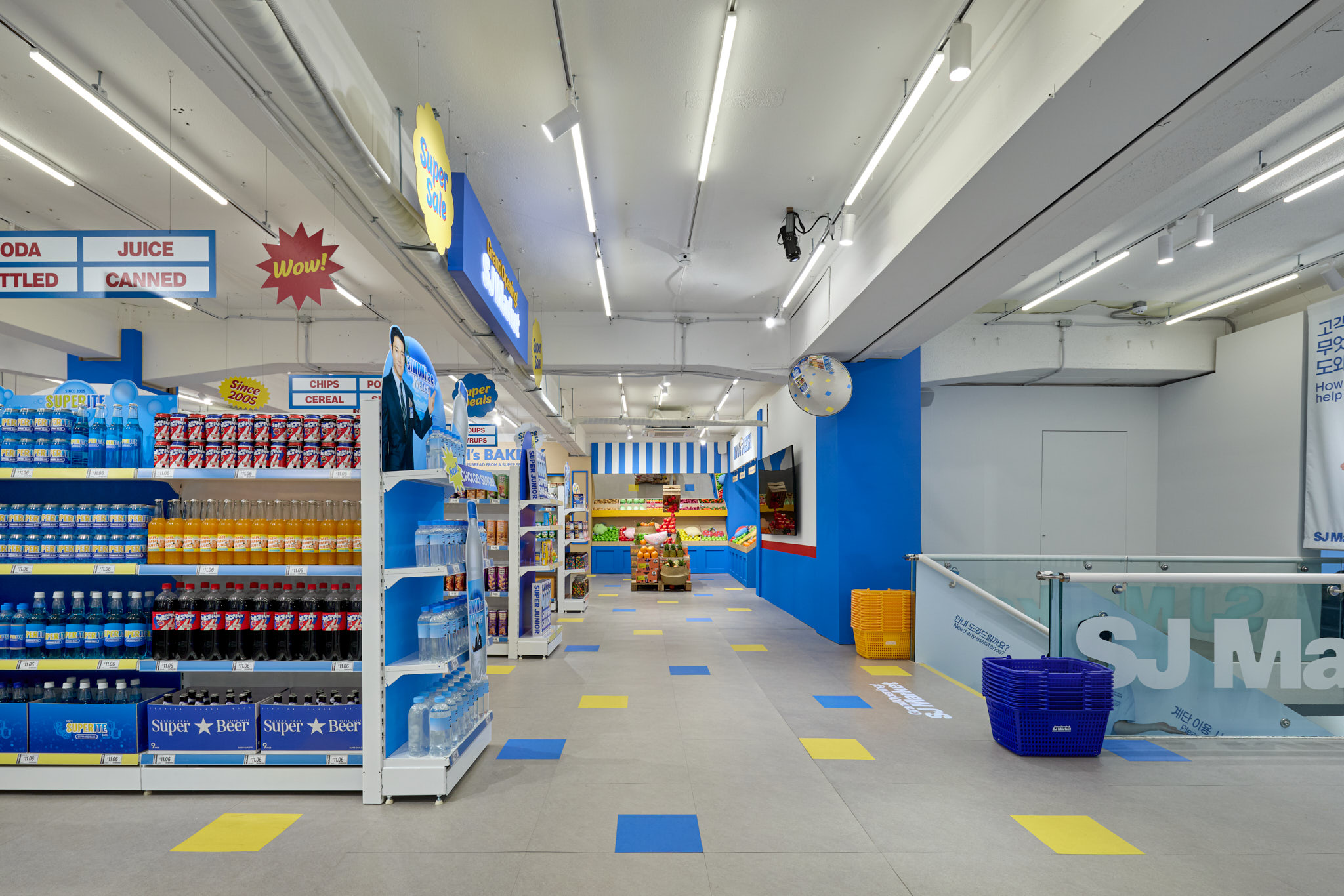 슈퍼주니어 데뷔 20주년을 맞아 오픈한 SJ Market 입니다. 20주년을 맞아 성수동에 문을 연 SJ Market은 실제 마트가 아닌 슈퍼주니어가 만든 상상 속 마트 입니다. 화려한 마트 공간과 마트 뒷편에 숨겨진 직원(슈퍼주니어 멤버)들의 오피스 공간까지, 즐길 거리와 볼거리가 가득한 마켓입니다.