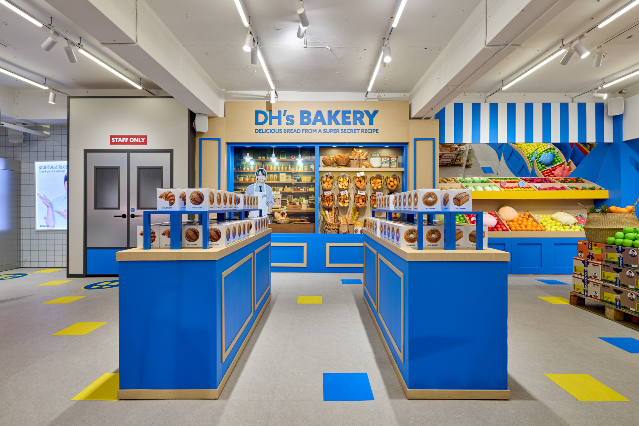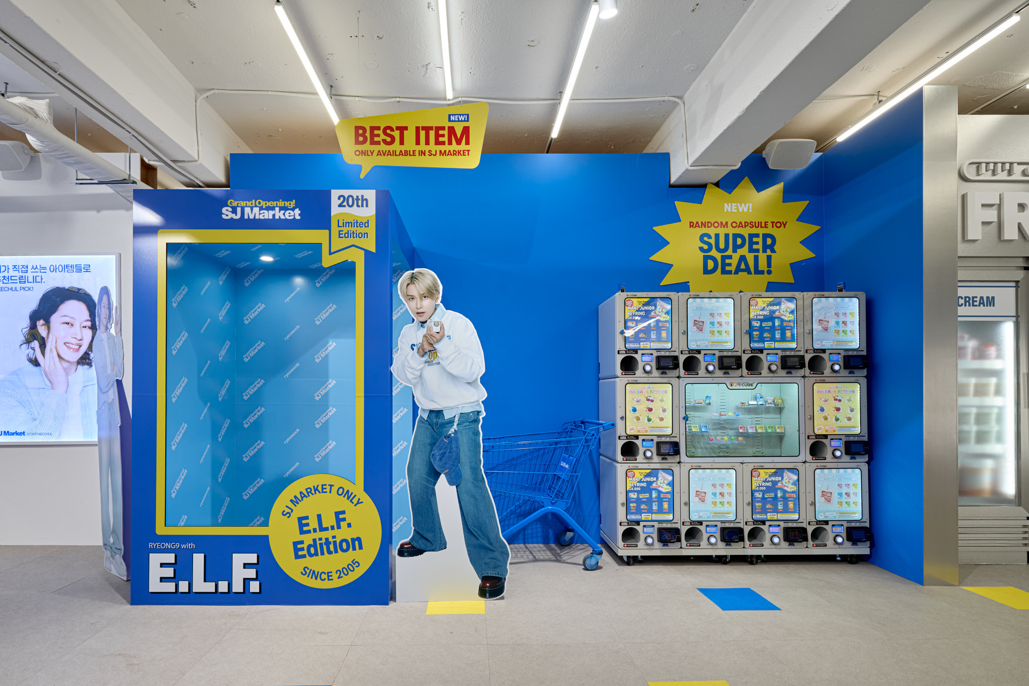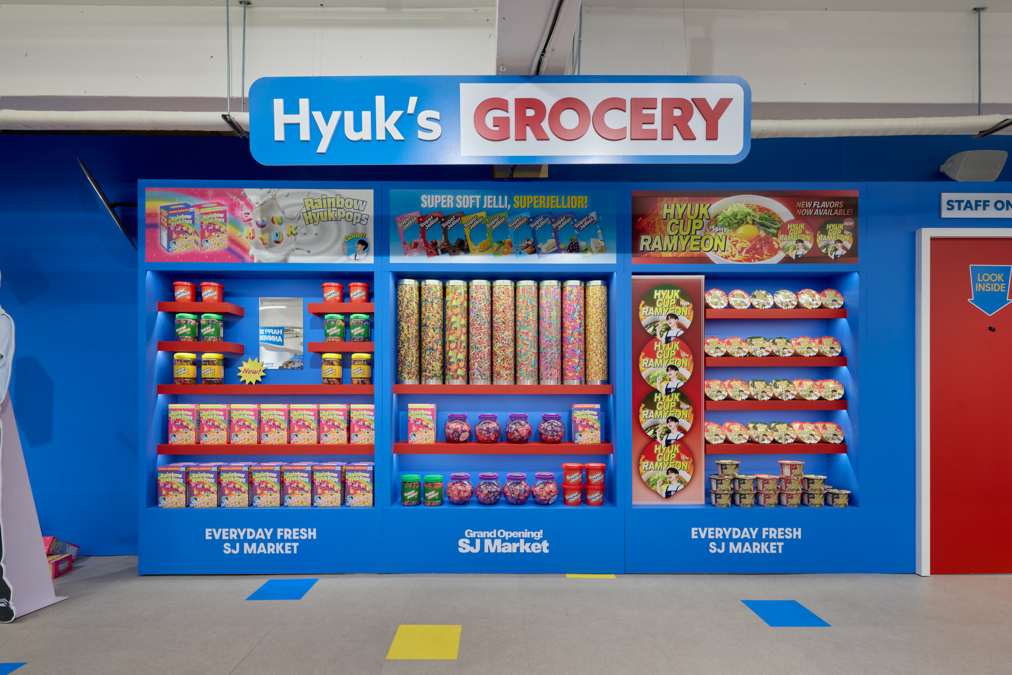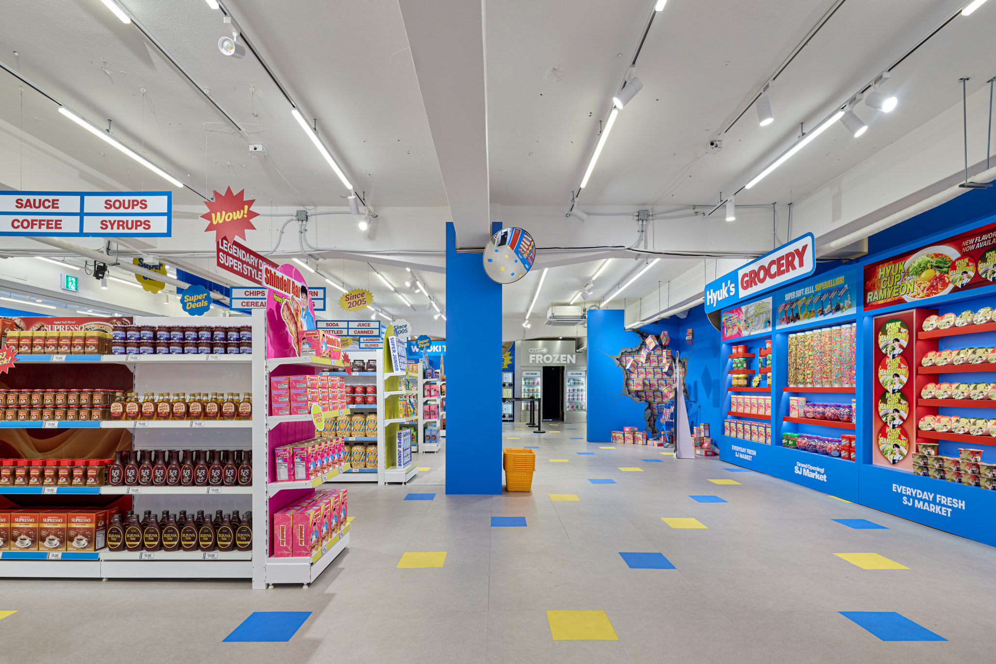 슈퍼주니어 데뷔 20주년을 맞아 오픈한 SJ Market 입니다. 20주년을 맞아 성수동에 문을 연 SJ Market은 실제 마트가 아닌 슈퍼주니어가 만든 상상 속 마트 입니다. 화려한 마트 공간과 마트 뒷편에 숨겨진 직원(슈퍼주니어 멤버)들의 오피스 공간까지, 즐길 거리와 볼거리가 가득한 마켓입니다.